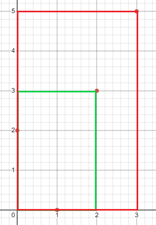 This only gives us rectangles, though, which is less than the actual answer. The reason for this is because we've failed to account for the boxes where there's only one or no points at the corners. Fortunately, we can construct such rectangles from the ones we initially have by expanding the top and/or bottom border to include any cows that weren't initially included in the fence.